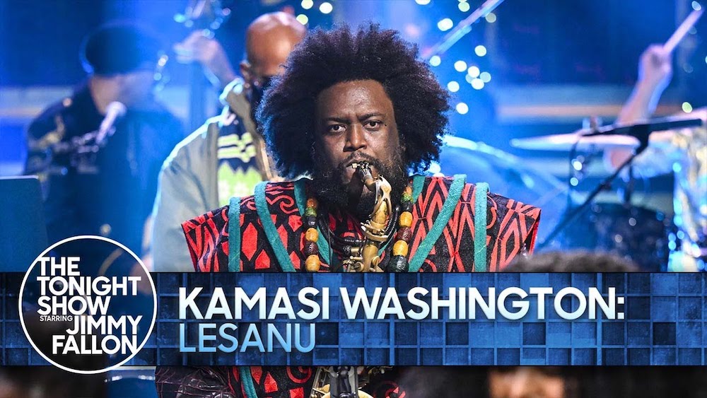 Young jazz great Kamasi Washington got a shoutout on Kendrick Lamar's recent #1 hit "squabble up," and he co-produced Kendrick's GNX bangers "tv off" and "luther." That's a strange new position for Washington. Even if he's worked with Kendrick before, he's never been involved in making hits. But that experience isn't going to stop Washington from his primary mission, which is performing cosmically epic jazz on the biggest stages possible. Last night, that mission brought him to The Tonight Show.