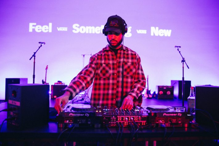 The title “Noise From The Archive” defined the room as we walked past a glass case featuring decades of Vans relics. You could see the design work of the Style 36 (aka the Old Skool), early advertisements, and collaborations that speak to the Old Skool Vans’ impact. The Germs, Descendents, Denzel Curry, Golf Wang, A Tribe Called Quest, Travis Barker, and Little Simz have all had their own Old Skool; the array of colors shined through the glass.