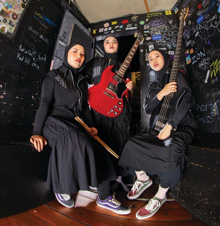 For Voice Of Baceprot, mere existence is an act of disruption. The all-female trio from the small Indonesian village of Singajaya has made waves in the world of heavy music all while wearing hijabs and performing songs with lyrics in Sundanese. Last summer they became the first Indonesian band to play Glastonbury and now they’re ambassadors for a new Warped Tour-inspired capsule from Vans releasing today.