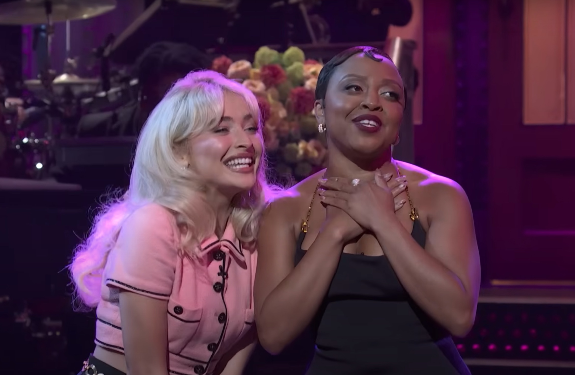 Quinta Brunson hosted Saturday Night Live for the second time last night with musical guest Benson Boone. The Abbott Elementary creator/star gave an inspiring pep talk during her monologue about how you shouldn't let people look down on you, and she knows how it feels to be looked down upon, because she's only 4'11". She sang a showtune listing examples of some successful shorties: Simone Biles, Kendrick Lamar, Tom Holland, and five-foot Sabrina Carpenter, who made a returning visit to SNL for a surprise appearance onstage.