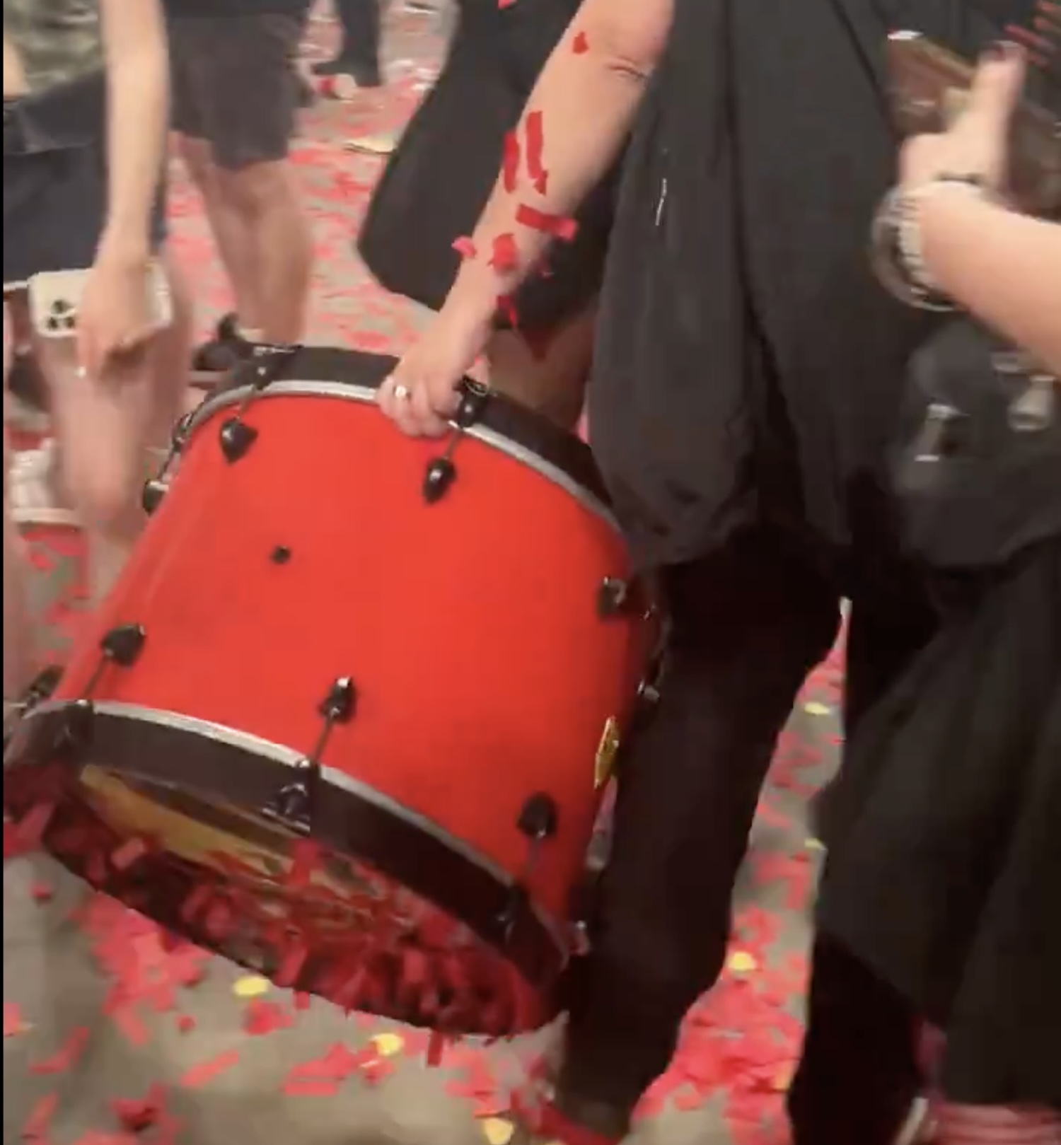 Last night, Twenty One Pilots played at Manchester's AO Arena, and they were down one drum at the end of the night. You almost have to respect the bugnuts boldness of this absurd act. After the gig, someone was just walking through the arena, holding what's clearly a customized drum with confetti sticking to it. There's video of it and everything. People are like, "I really don't think you should take that," but nobody steps in to stop the heist.