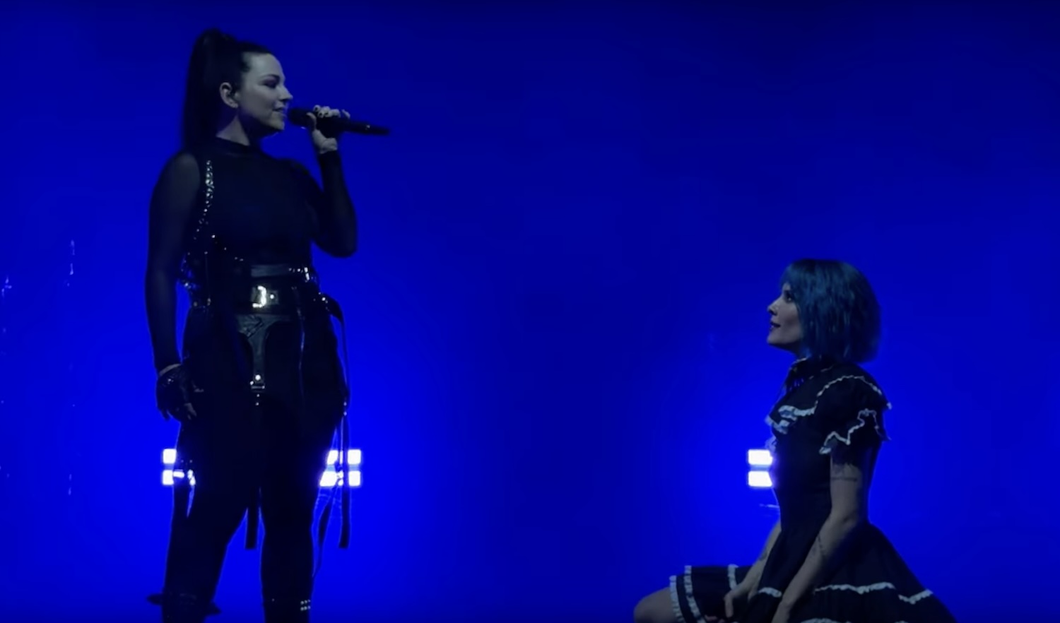 Thanks in part to Nathan Fielder and The Rehearsal, Evanescence have been in the air a lot lately. So it's good timing that Halsey just got together with Evanescence leader Amy Lee to record the arena-goth mega-ballad "Hand That Feeds" for the soundtrack of the John Wick spinoff Ballerina. Right now, Halsey is on her For My Last Trick tour, which has openers like Alvvays and Magdalena Bay along the way. On Wednesday night, the tour came to the Hollywood Bowl, and Halsey brought out Amy Lee for the live debut of "Hand That Feeds." Halsey and Amy Lee really have complementary voices, and it was cool to see how happy they were to be onstage together. Watch some fan footage below.