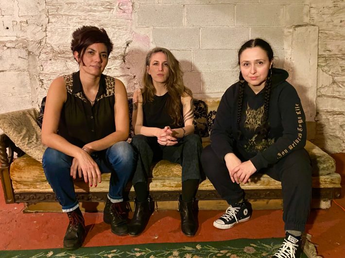 Guitarist and vocalist Mendoza you may know from the Bill Orcutt Guitar Quartet — check our recent interview — or from her solo work, or from her other bands Unnatural Ways and Mendoza Hoff Revels. Violinist gabby fluke-mogul is Mendoza's bandmate in AM/FM and has worked with a bunch of avant-garde jazz types like Zoh Amba, Ivo Perelman, William Parker, Irreversible Entanglements' Luke Stewart... the list goes on. Drummer Pérez comes from death metal; a founding member of Hypoxia and Castrator, she's entering into the improv world for the first time here.