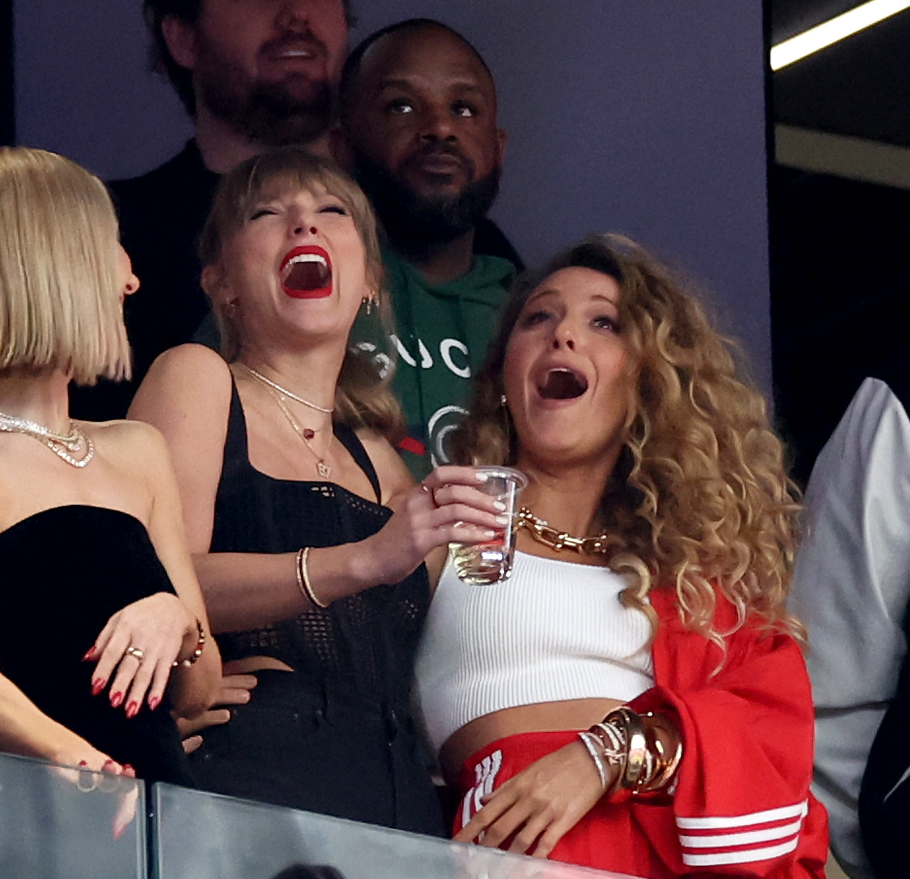 Two weeks ago Taylor Swift was subpoenaed to testify in her longtime friend Blake Lively's lawsuit against Justin Baldoni, the director of her movie It Ends With Us. Lively is suing Baldoni for sexual harassment and a supposed online smear campaign waged against Lively after the harassment allegations came out. Confirming the subpoena, a rep for Swift noted that she "never set foot on the set of this movie, was not privy to its creation in any way, "and was traveling around the globe during 2023 and 2024 headlining the biggest tour in history." She did, however, hang out with Blake Lively during the making of the movie; the photo above shows them together at the Super Bowl in February 2024.