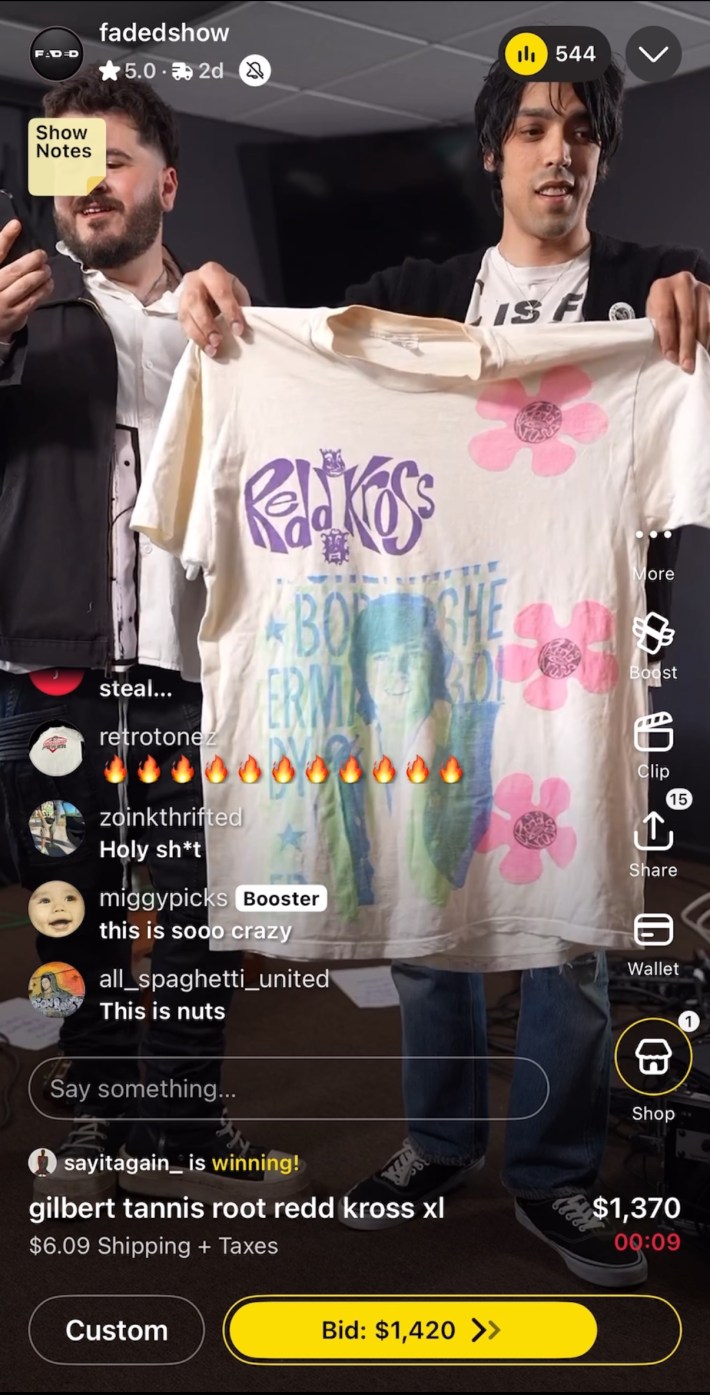 Last week Fortune called Whatnot "the wildly-entertaining, FOMO-inducing, $5 billion shopping app you’ve never heard of." The article about the six-year-old live auction platform is mostly focused on baseball cards and doesn't mention what I've been using it for over the last few months, which is to overpay for vintage shoegaze t-shirts. (Followers of my Instagram know that is my true passion and running Stereogum is a side hustle.)