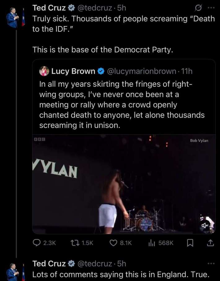 The BBC responded saying Bob Vylan's comments were “deeply offensive” and that their set would not be viewable on-demand. Now, Glastonbury organizers have weighed in, too, saying on the festival's social media that they were "appalled" by Bob Vylan's remarks. "Their chants very much crossed a line and we are urgently reminding everyone involved in the production of the Festival that there is no place at Glastonbury for antisemitism, hate speech or incitement to violence," the statement reads in part. Here's the full thing: