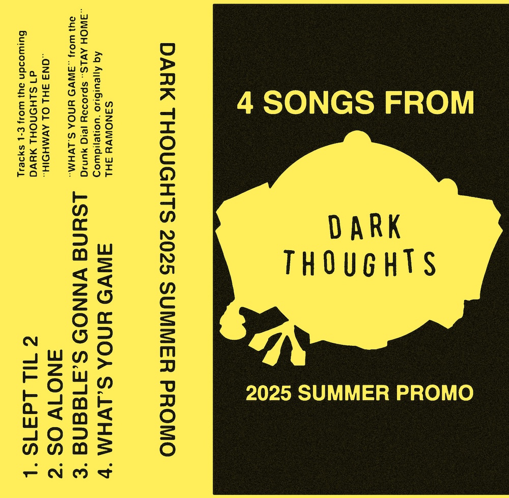 Today, Dark Thoughts shared a new four-song cassette called 2025 Summer Promo. One of the four songs is a cover of the Ramones' 1977 jam "What's Your Game," which they recorded remotely during COVID and released in 2020. The other three tracks are all original Dark Thoughts bangers that find the band back in sprint mode. In the Bandcamp description, they say that the new tracks will appear on an upcoming album called Highway To The End. All three songs are relentlessly fun. They rampage through your speakers like a whirlwind, and they're gone before you know what happened. The longest of the new tracks is one minute and 58 seconds long. This is really, really good shit. Listen below.