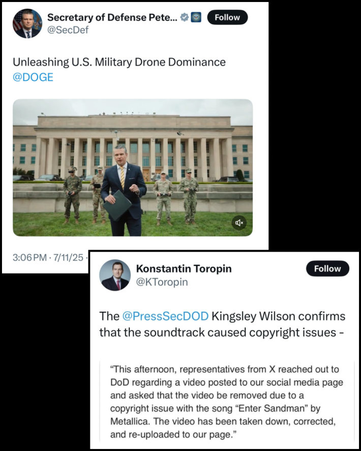 UPDATE: Metallica don’t want to soundtrack the federal government’s social media videos either…
