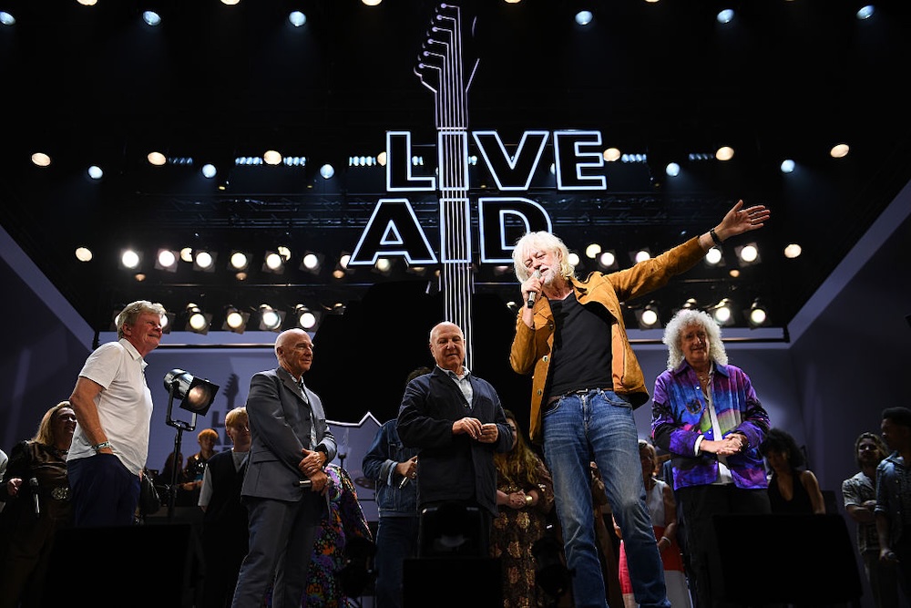 In July 1985, a vast array of mega-popular artists performed at Live Aid, a pair of massive benefit concerts held in London and Philadelphia and broadcast worldwide. Led Zeppelin reunited for the occasion, as did Black Sabbath. Teddy Pendergrass made his first public appearance after being paralyzed in a 1982 car crash. Phil Collins jumped on the Concorde so that he could perform at both concerts. U2's Live Aid performance is considered a key moment in their rise, and Queen's set was so legendary that it was recreated in the Oscar-winning film Bohemian Rhaposdy decades later. It was a big deal, and the whole thing happened to raise money for Ethiopian famine relief. Sunday was the 40th anniversary of Band Aid, and concert founders Bob Geldof and Midge Ure marked the occasion by reuniting with Queen guitarist Brian May.
