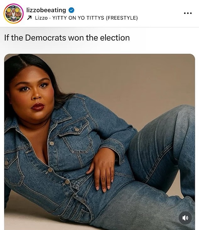 Today, Lizzo chimed in with a meme depicting herself in a similar denim sprawl, with the caption, "If the Democrats won the election."
