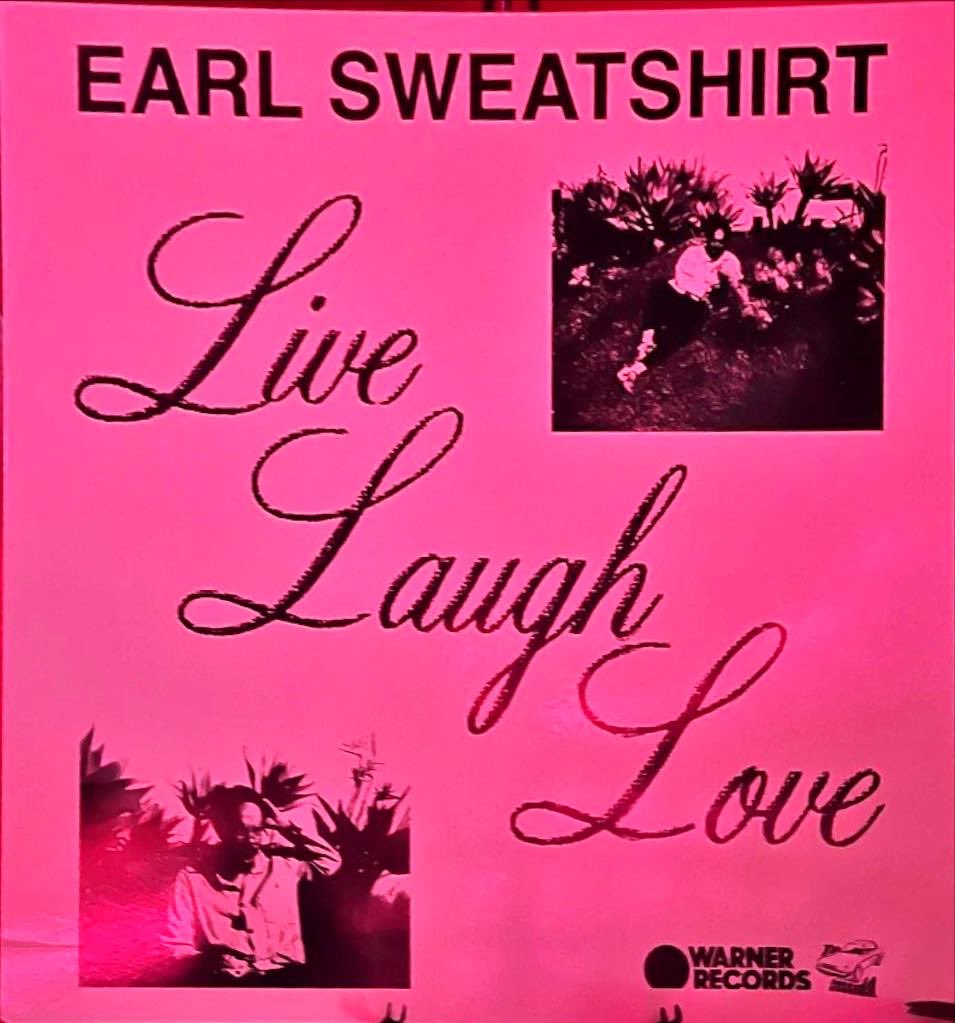 There's a new Earl Sweatshirt album. Or: We think there's a new Earl Sweatshirt album. It could be an elaborate prank, but pranks don't usually get this elaborate. This new Earl Sweatshirt album is called Live Laugh Love, which is an extremely funny title for a prospective Earl Sweatshirt album. On Friday night, Earl held a listening party for the album in Los Angeles, but he wasn't there in person. Instead, Earl pulled an MF DOOM and sent an obvious impostor out to perform his songs. On the other hand, the DJ at that listening party did play at least some of what appears to be an entire Earl Sweatshirt album. It doesn't seem like he'd make a whole new album just for prank purposes, does it? UPDATE: It is, indeed, a new album, and it's coming out this Friday, Earl confirmed today with a bizarre Instagram post.