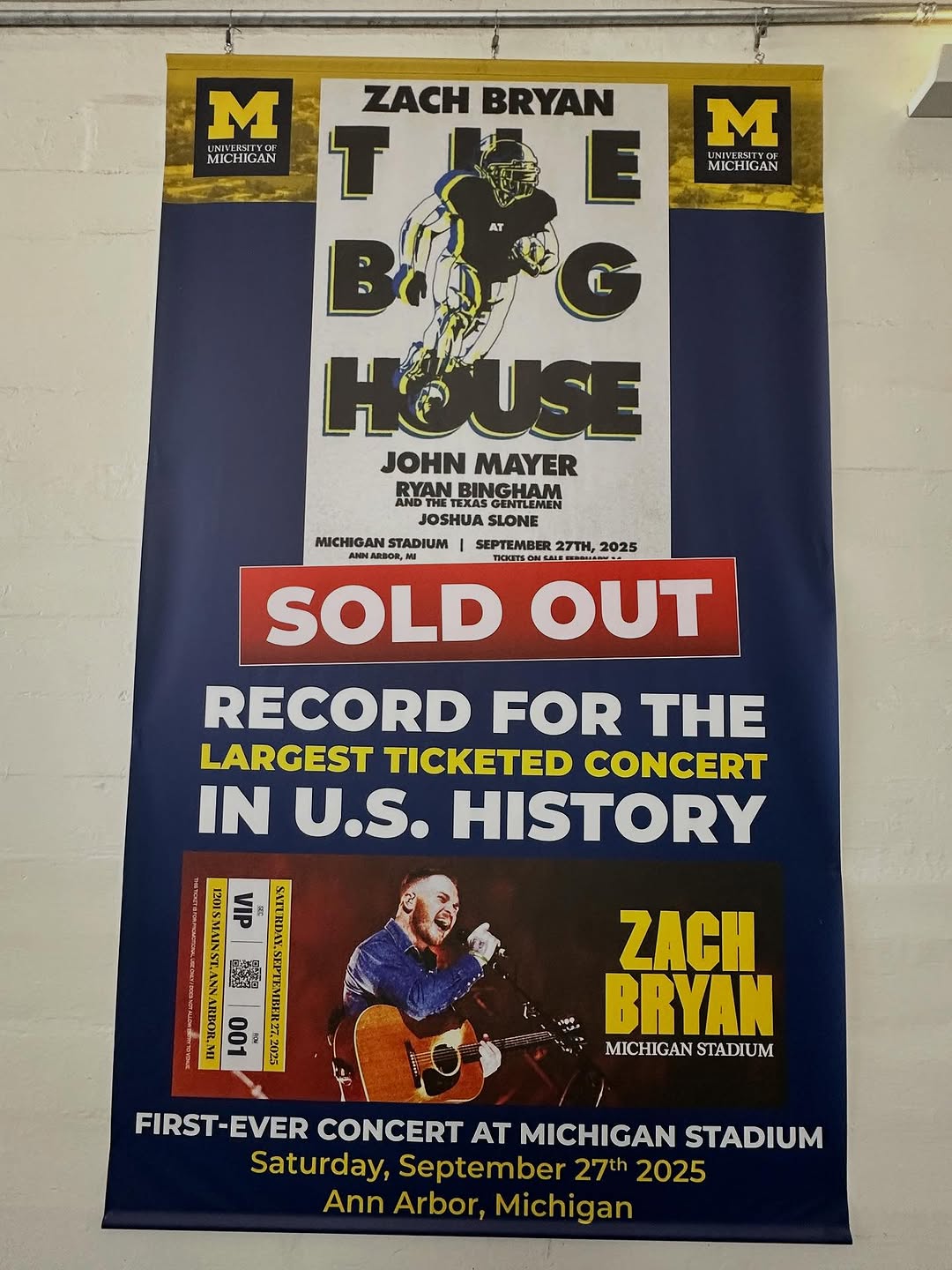 Zach Bryan now holds a record for headlining the highest-attended ticketed concert in America. Last night the country-rock star performed at Michigan Stadium -- aka the Big House -- in Ann Arbor, the Western Hemisphere's largest stadium which is typically reserved for University Of Michigan football. I guess they're doing concerts there now, and according to local news, Bryan brought in a record-breaking crowd of over 112,000 spectators.