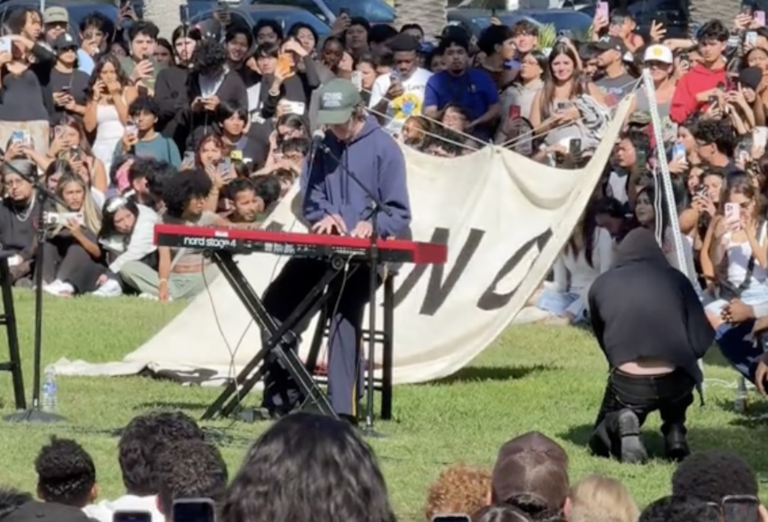 Caesar, the Toronto-born alt-R&B star, is about to release Son Of Spergy, a new album that features collaborations with people like Bon Iver, Blood Orange, and Sampha. On Saturday, he played a one-off daytime acoustic set at Elysian Park in Los Angeles. Caesar played a bunch of songs, Mustafa did a few, and Brendan Yates came out for one track, even though his band is currently in the middle of a huge tour. Caesar introduced Yates as "a dear friend of ours," and he came out and played "Never Enough," the opening title track from Turnstile's new album, solo on a keyboard.