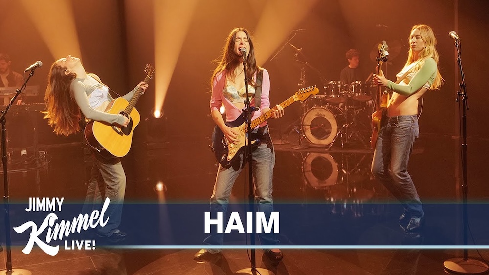 On Kimmel, the Haim sisters sounded really good. Alana switched instruments mid-song, as she loves to do. Danielle ripped a kickass solo. I wish they didn't do the thing where all the members of their backing band were lit so dimly that they might as well have been invisible, but I guess that's showbiz. Watch it below.
