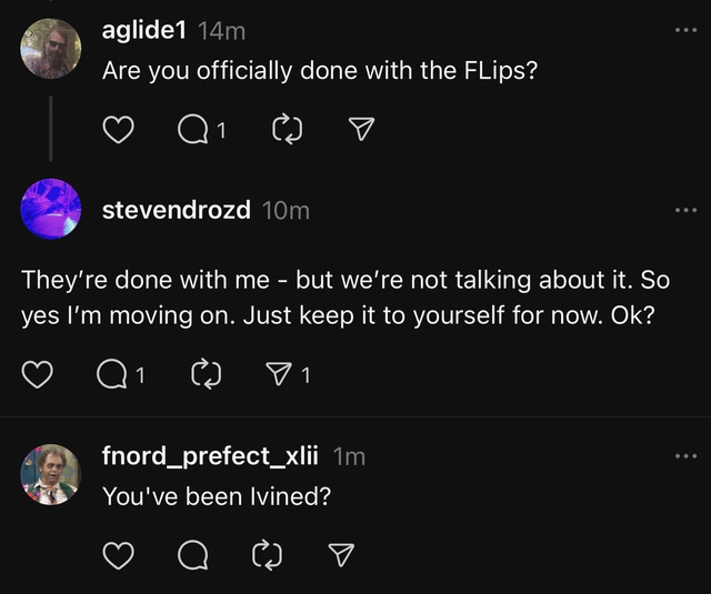 Yesterday, Drozd posted on Threads about how excited he was to acquire an Akai drum machine. In the replies, a fan asked him, "Are you officially done with the FLips?" In a reply that he later deleted, Drozd wrote, "They're done with me — but we're not talking about it. So yes I'm moving on. Just keep it to yourself for now. Ok?" It's possible that Drozd didn't realize that his Threads replies were public. Before Drozd deleted that reply, someone posted a screengrab on Reddit.