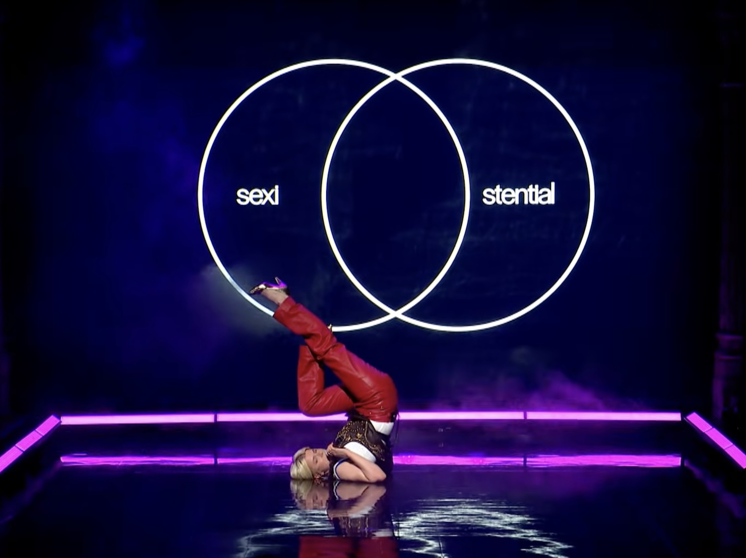 This was an interesting decision! "Sexistential" isn't exactly the most relatable song in the Robyn catalog. It's the one where she raps about the extremely specific situation of trying to find random hookups while pregnant via IVF. Also, that song is full of cusswords, which would obviously need to be bleeped to broadcast on CBS. But Robyn is one of our great pop performers, and she truly brought it to that Colbert stage.