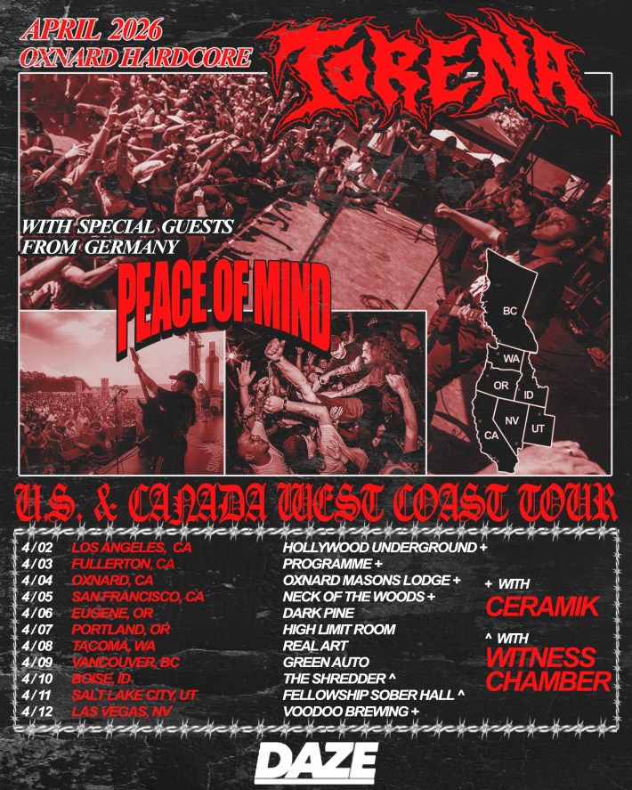 Torena released their full-length debut No Control in 2024. Now, they're getting ready to tour the West Coast with the German band Peace Of Mind, and they've hit us with a ferociously groovy new track called "Extinction." Experience the riffage below.