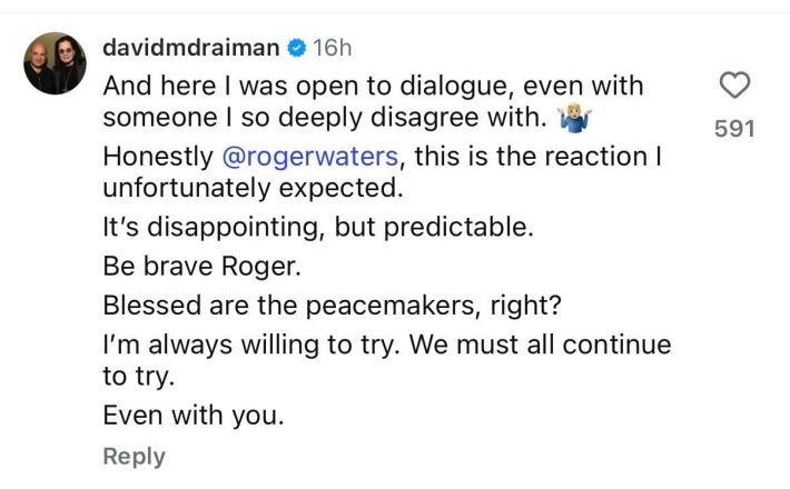 Draiman has responded, commenting on Waters' post:
