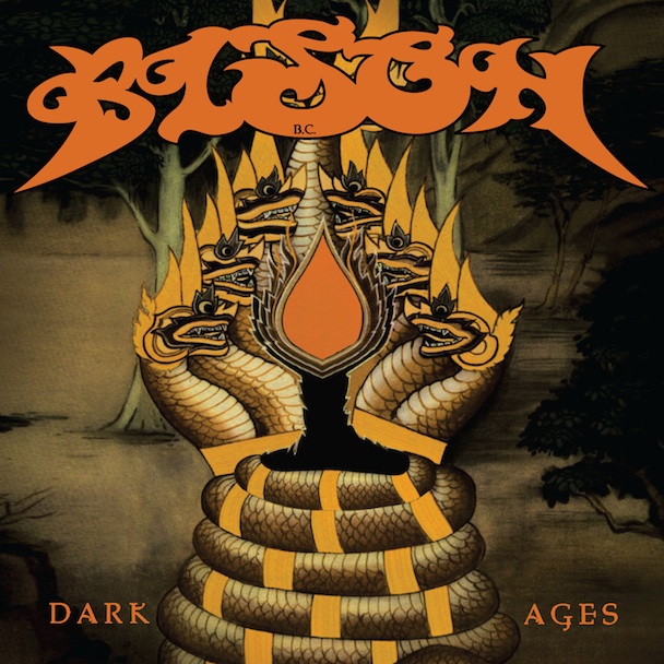 Vancouver quartet Bison B.C.'s third album Dark Ages has a brightness to it, from the cover's flaming serpents and the band's orange logo to the instrumentation across these seven songs and 46 minutes -- great double guitar leads, the unexpected gently twanging interlude, cathartic and anthemic vocal chops, etc. It's celebratory even when it's dirty or seemingly apocalyptic. A side-effect of the band's relative youth? Or maybe it's mixing up their sludge storm with vibrant shout-along punk and torn-denim thrash. See, for example, the up-swinging riffs and group chants in "Two-Day Booze," a song that approximates a climb toward a good buzz, a few drinks before the inevitable crash. TGIF.