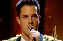 You have to hand it to Brandon Feathers: The man will not give up on those avian shoulder pads. He wore them in the Killers' Day & Age promo pics, "Human"'s dusty video, and they, along with that giant kosher "K," made the trip to the UK for the band's rendition of the song on Jools Holland. The performance? The band gets pretty into it. So much so, that one of Brandon's feathers gets ruffled ... or erect? Note the above screen grab and then move on: