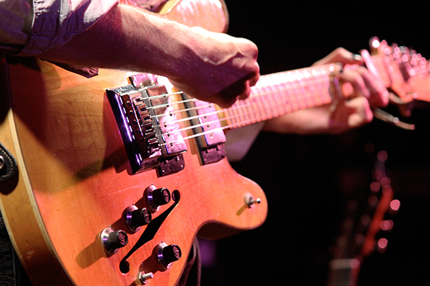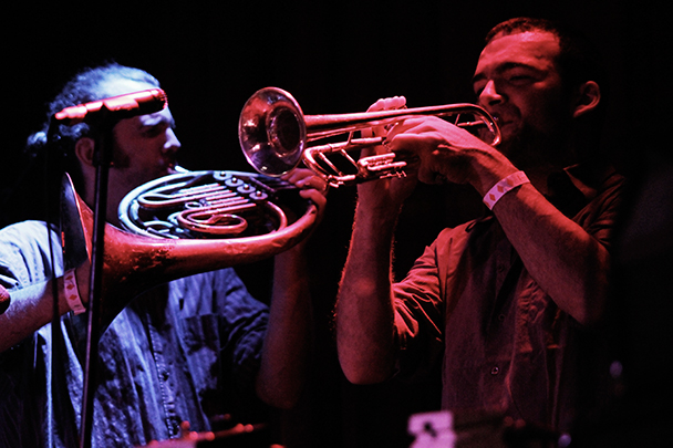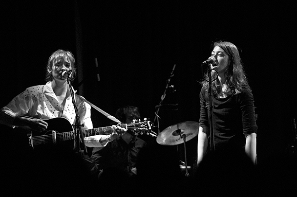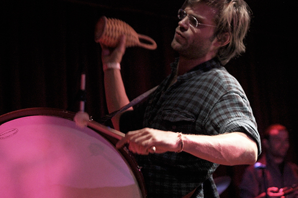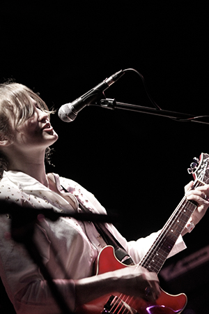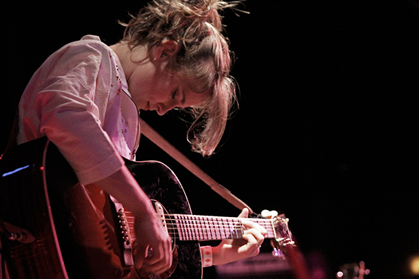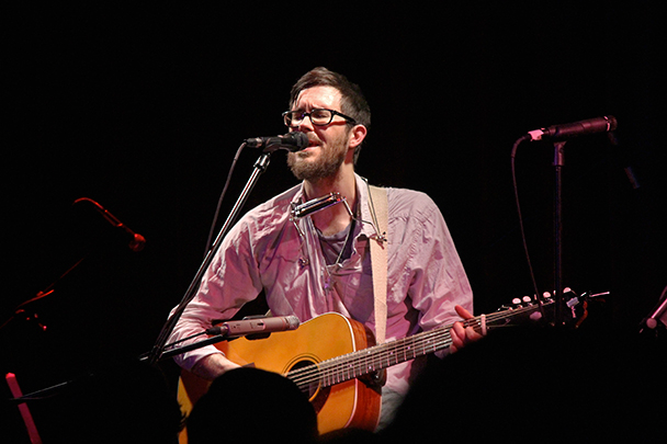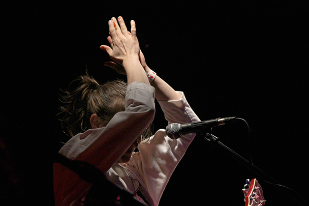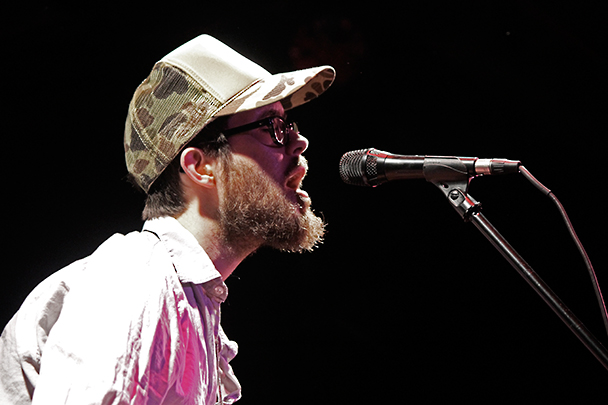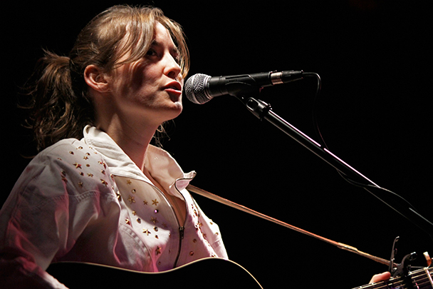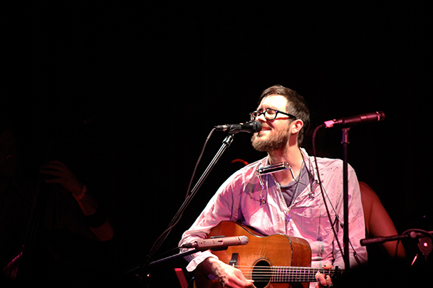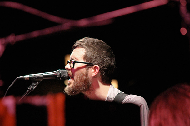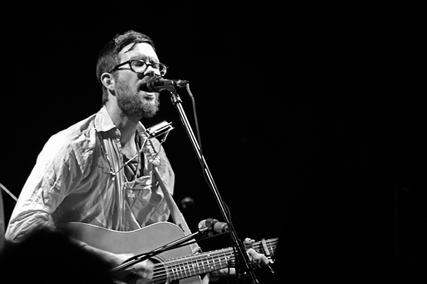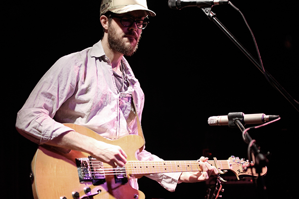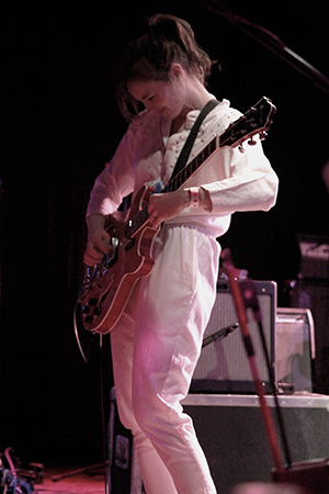 The last time we brought you photos from an Elvis Perkins show was in December at the Bowery Ballroom during a stretch of particularly grey weather. This weekend things were sunnier, despite a few clouds and people still singing about "Doomsday." Perkins has grown out his beard and added camo to his increasingly countrified ensemble. Otherwise, he showed up to the Bell House in usual form (complete with horns). Speaking of country western get-ups: Friday's opener, the Brooklyn-via-Kentucky country-folk songwriter Dawn Landes took the Elvis thing seriously and came decked-out in a white rhinestone-lined jumpsuit with Springtime red boots. Our photographer Sean Edgar captured her footwear and various other details.