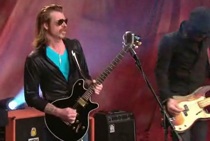 The Eagles guys are getting a lot of mileage out of this mediocre song. They passed along two video versions -- one starring pin art and one a pinhead -- and then a couple months ago brought the song to Jimmy Kimmel. In case you missed it those times, the most recent performance came via Leno this past Friday. You can watch it at Hulu. Things to note: Jay's amused by the Heart On pun, it's funny to hear him say "death metal" even in this totally-not-death-metal context, and he digs the band's "nice bikes."