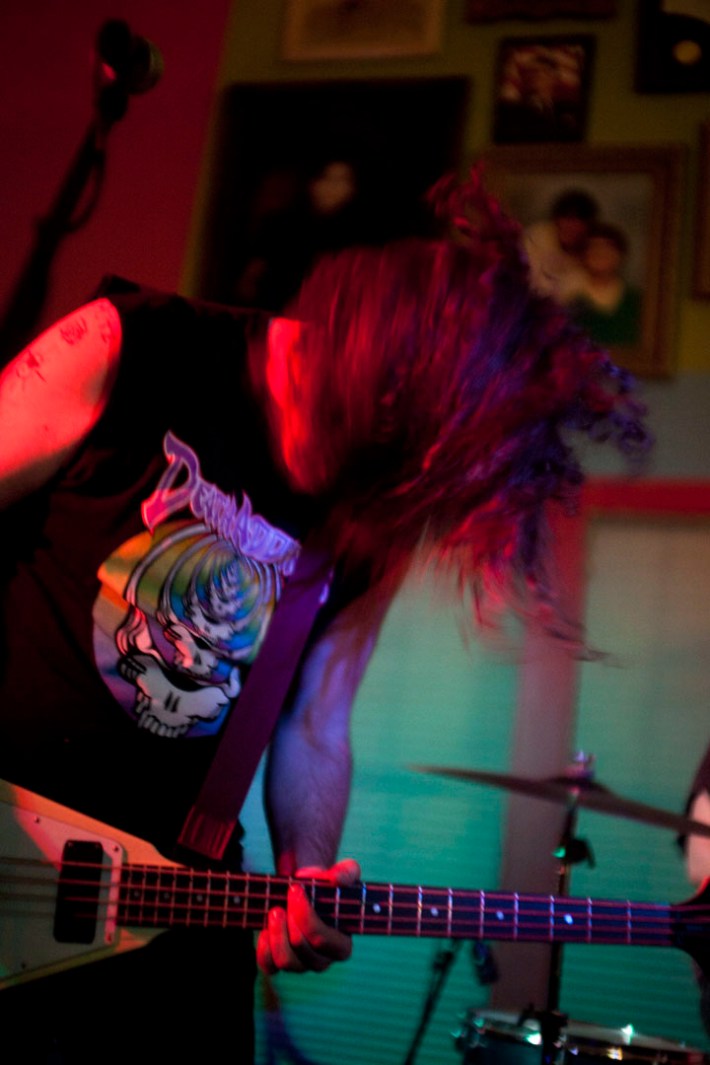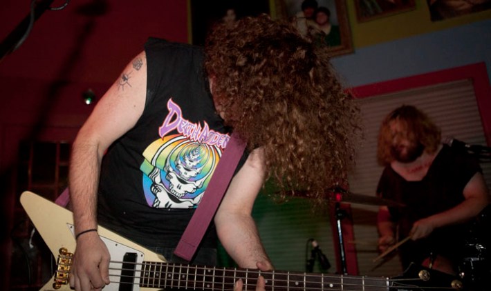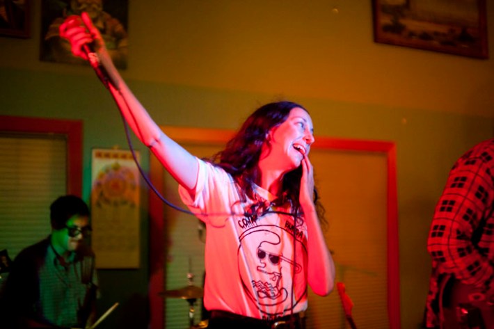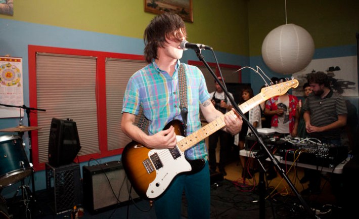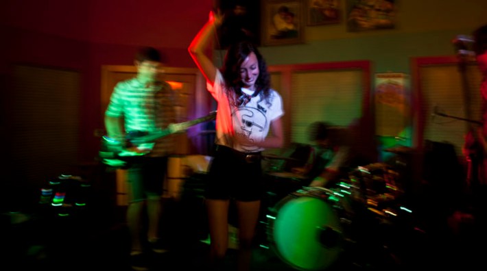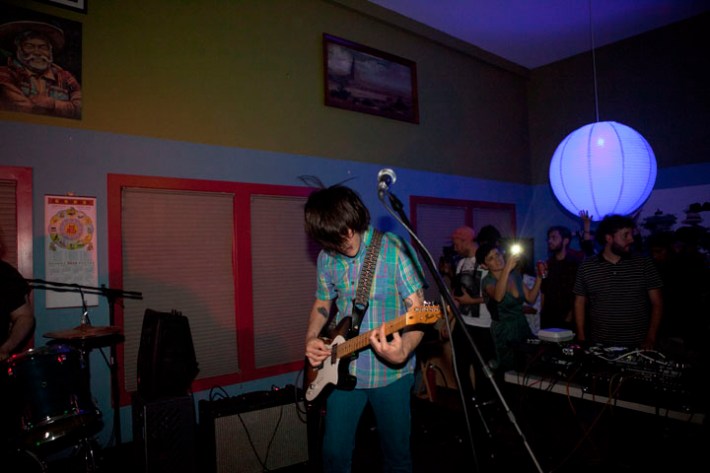 Madame Wong's, the legendary restaurant-turned-punk-rock/new wave club, closed in 1985. But some kids reopened it for semi-private shows last year, and hosted bands like Vampire Weekend and Harlem in their restaurant-turned-loft. Wavves, with openers Woah Hunx, are some of the last bands to pass through the venue, since the occupants must leave to make way for the apartment's new owners. Photographer Graeme Flegenheimer, who caught the show for us, says the view of downtown L.A. from the loft is pretty great. The view inside? Not so great. The lights went out during Wavves, making it a little tricky to document, though he still got great shots of Wavves, Woah Hunx, and that view.