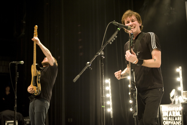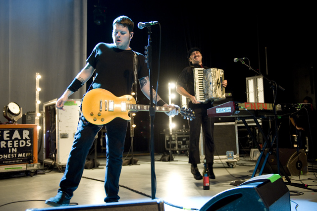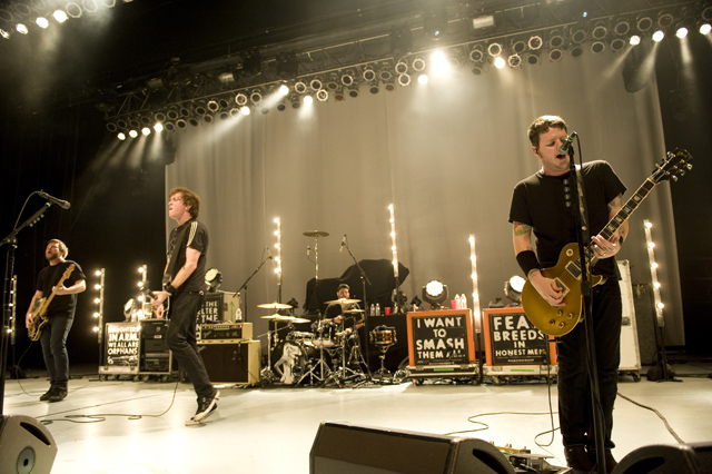 In a penultimate homecoming show to close the books on their Swoon tour, the Silversun Pickups couldn't stop smiling while whipping through a razor sharp fourteen song set culminating with the feedback wash of "Common Reactor." Openers Against Me! deserve the touring logistics award of the year for sprinting overnight to Lollapalooza for an early afternoon set. Local favorites, The Henry Clay People were probably just as excited as the Silversun Pickups to play the majestic Greek Theater.