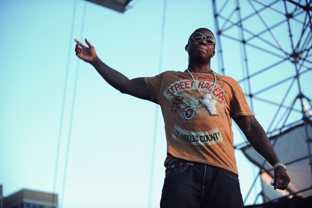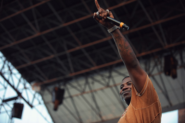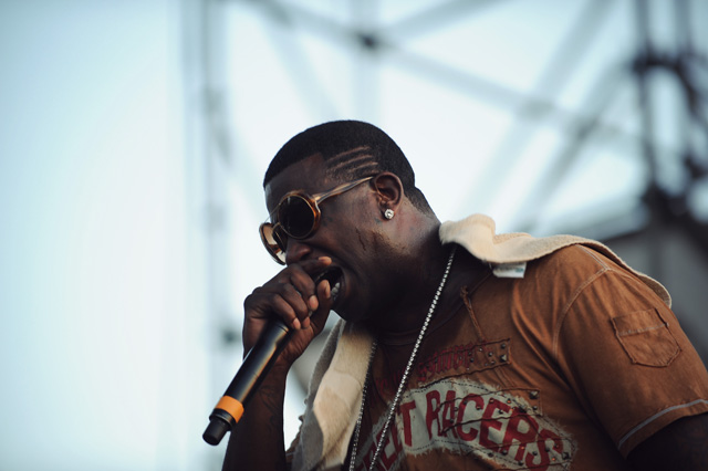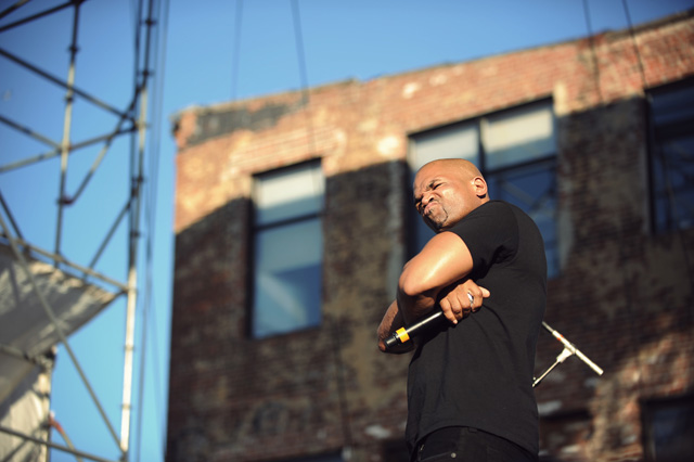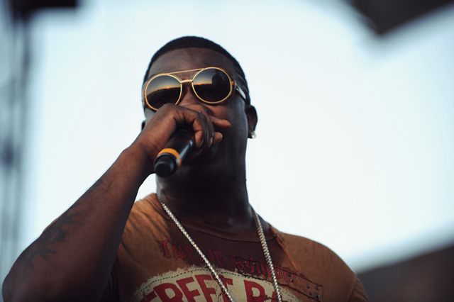And so ended the Pool Parties, at least in the form in which we know them. That is to say, they ended with fun and sunny sets from the previously confirmed Florida booty rap party starter Dominique Young Unique and Barcelona's blissed out dance rock blog-beaters Delorean, and a series of special guests that ran a rap line rarely toed there over the past five years: the Cool Kids, Doug E. Fresh, the latter-half of Run-D.M.C., Big Freedia, and big pleaser/not-so-secret special headliner Gucci Mane. Yes, thrown in there was D.M.C., as in the man who's flanked Reverend Run, here joined by Andrew W.K. (and full band, for "Tricky") and Tim Harrington, for "Walk This Way." If it sounded somewhat unhinged, it was. If it sounded fun, it was that, too. It also felt nostalgic -- turns out it's a good morning for that.