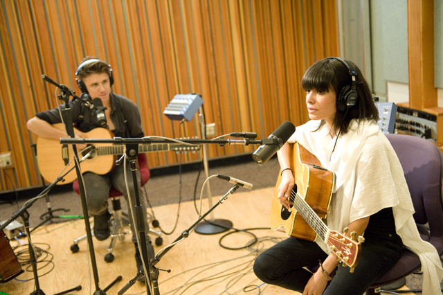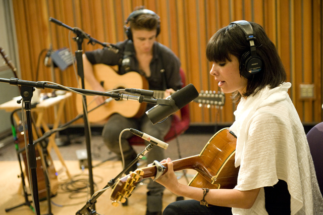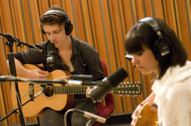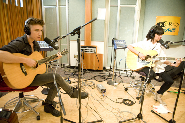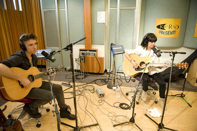 School of Seven Bells are no strangers to unplugging their instruments. Yesterday they stopped by KCRW for a live studio performance of stripped down, shimmery selections from their latest album Disconnect From Desire. Check out the podcast to discover the inspiration behind the title of the album. If you catch them on tour, you may hear the ethereal cover of Siouxsie and the Banshees' "Kiss Them For Me" they played during soundcheck.