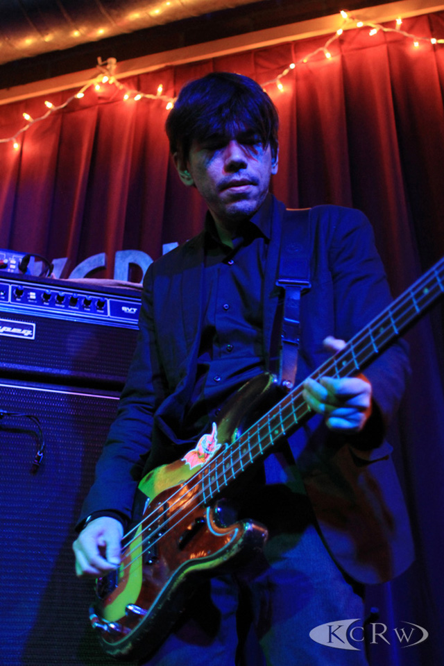 Playing in a space the size of a living room, Interpol worked through an eight-song set along with an interview for KCRW prior to the release of their new album. The new members settled in well: David Pajo was more than proficient on the bass while Brandon Curtis added the background vocals on "NYC" while taking over keyboard duties. Interpol kick off their tour stateside after a few international dates supporting U2. Photos from the KCRW set above, below is video from the band's stop by Jimmy Kimmel this week with "Barricade" and "Summer Well":