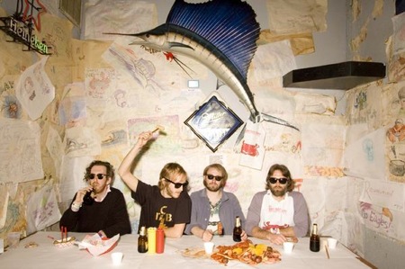 These days the new cool is getting artist blogs to blog about other artists. Extra cool hunting points are awarded if you go Kanye-style and start premiering songs and videos for your RSS subscribers. So in addition to owning the 2009 Q1.5 music blog discourse, Grizzly Bear is now in the business of premiering Foreign Born MP3s. Which is actually pretty smart of FB, since the GB blog has been getting good traffic lately for various reasons, all of which rhyme with the word Veckatimest. I liked Foreign Born's last album On The Wing Now, although the last I remember seeing them was when they popped up as themselves in the series premiere of Chuck (which allegedly has become a really good show in the days since its indie-rock song overload). The LA band has officially finished work on a new album, Grizzly Ed loves it and got permission to share, describing it like so: