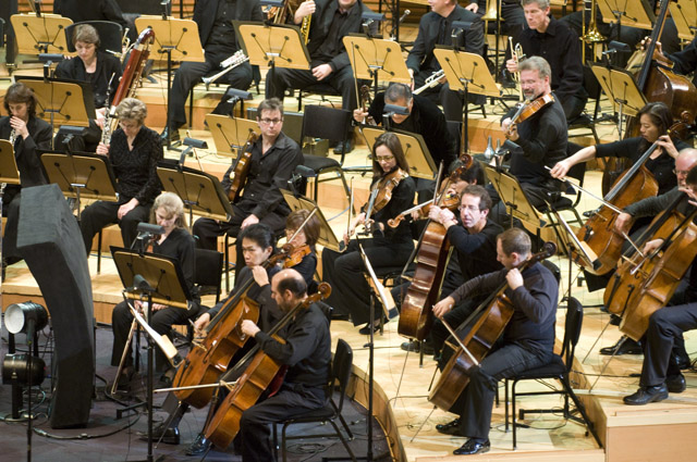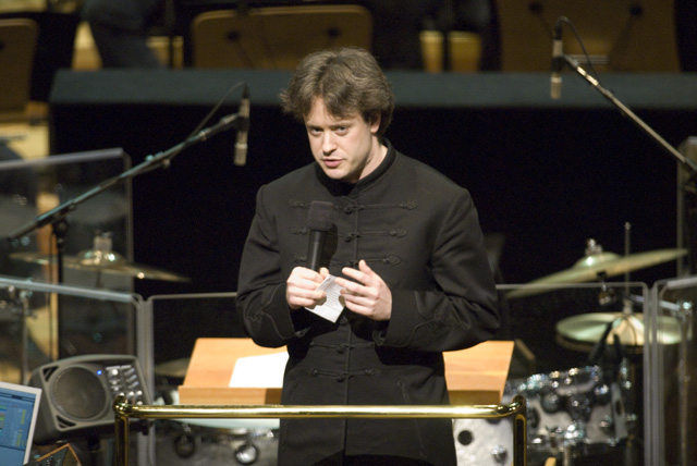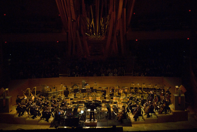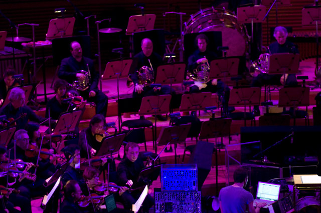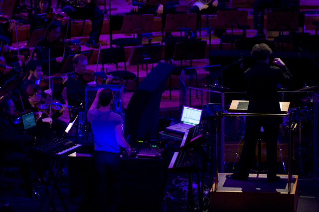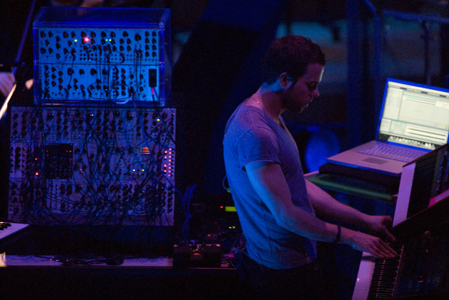 Speaking to NME before the sold-out event, Anthony Gonzalez promised, "We'll play tracks that are more like orchestral material -- mostly songs from my previous albums because I don't think it's really interesting to play pop songs with the orchestra." The night started with Anthony solo, doing 30 minutes of ambient synth washes "using a custom analog synthesizer made of Livewire modules" according to our photog. Conducted by Julian Kuerti, the Philharmonic then performed Pärt's "Fratres" and Debussy's "La Mer," two pieces selected by M83. And for the collaborative section: "Moonchild," "Highest Journey," (Bloc Party's) "The Pioneers (M83 Remix)," "Lower Your Eyelids To Die With The Sun" and "In The Cold I'm Standing." Hopefully concertgoers expecting cuts from the John Hughes-inspired '80s homage Saturdays = Youth weren't too disappointed. Though that seems unlikely, because that album is terrific. In any case, here's what they saw.