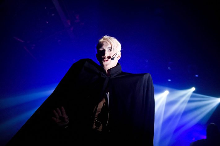 It's all to be self-released on his new label Bloody Chamber Music under an It's Up To You plan, as in it's up to you to finance it at bandstocks. In addition to the new, the setlist touched on Lycanthropy, Wind In The Wires, Magic Position, and a tease of Joni Mitchell's "All I Want" on dulcier, Wolf then instructing everyone to buy Blue immediately because of its lyrical genius. Patrick Wolf never lied. We're expecting The Bachelor's lead single "Vulture" in the coming weeks. For now, relive last night via dramatic pics and setlist:
