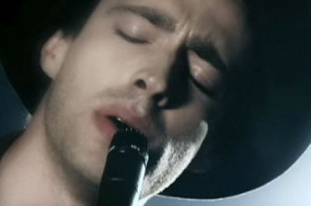 Last week we premiered a dramatically lit black and white clip for Sun Gangs' "Scarecrow," performed acoustic at the Institute of Contemporary Arts in London. For Veils' new "Letter" video, Finn Andrews switches things up (just a little) by plugging in and sharing the screen with his bandmates. He's still wearing that hat, though.