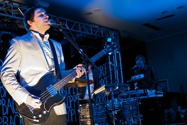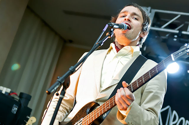 Peter, Bjorn & John's first US show in support of their highly anticipated Living Thing took place in a hotel ballroom last night, as part of W's WonderLust Live Concert Series. The band played the new album, a couple of older songs, and closed with "Young Folks" with Heather D'Angleo of Au Revoir, Simone singing the lady parts. In attendance were Swedish indie-pop fans Parker Posey, Julia Stiles, Zach Condon, Dave 1 of Chromeo, Mick Rock, and our photographer Natasha Ryan. Enjoy her pic while you rock out to "Nothing To Worry About."