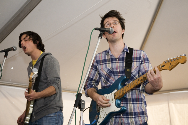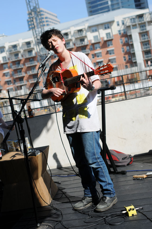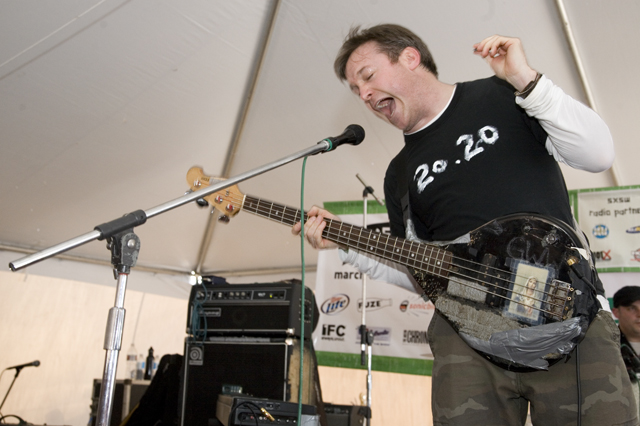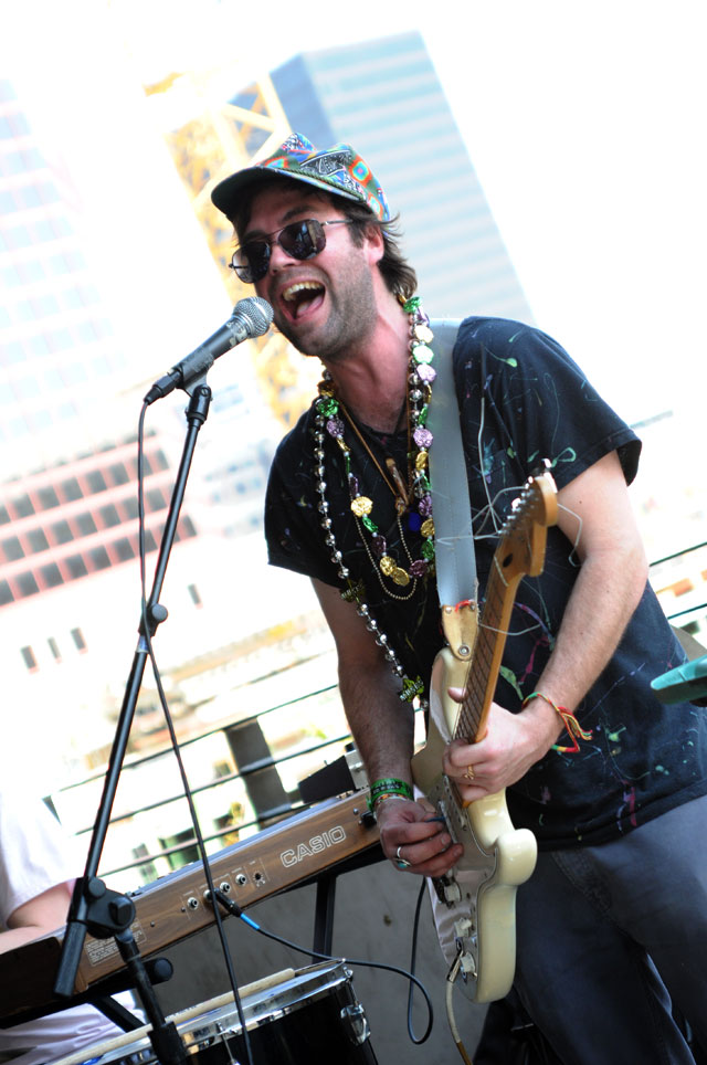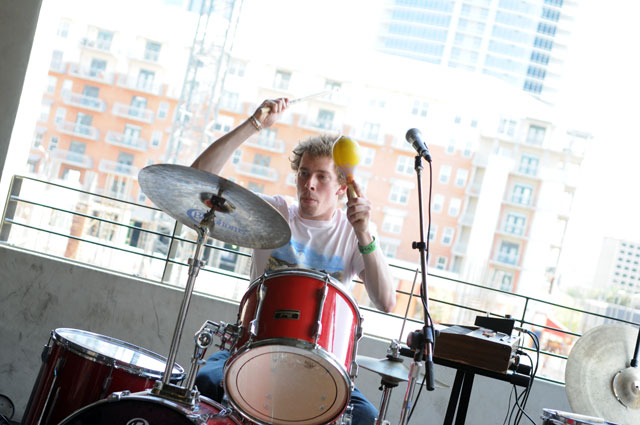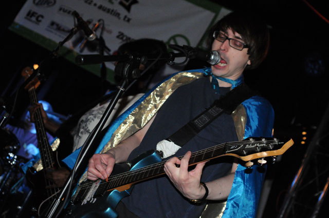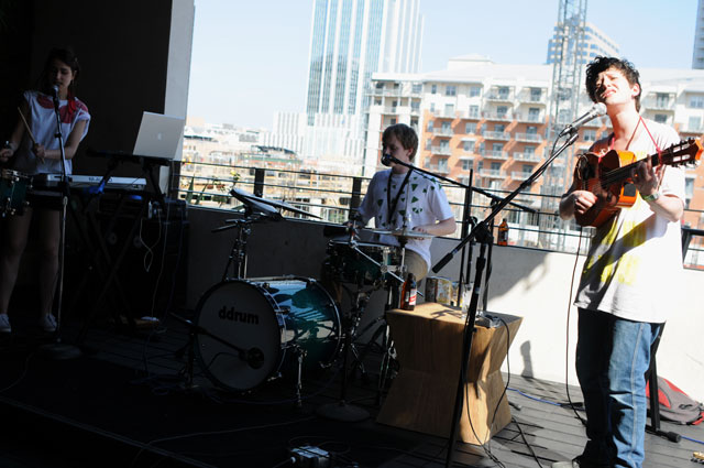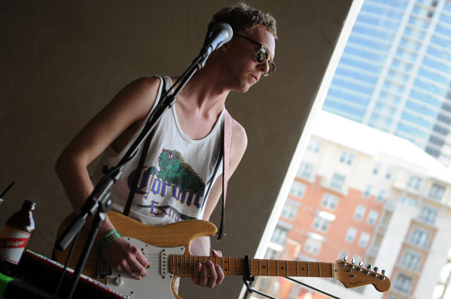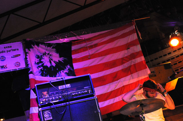 By Amrit Singh & Brandon Stosuy Yesterday started off bright, early, and ecstatic with NJ's Roadside Graves at Peckerheads. The band seduced a 2PM crowd into hooting, hollering, do-sa-do-ing, and otherwise pretending it was after midnight to tracks both new ("Far And Wide," "My Father Sat Me Down," "Ruby") and old ("Family And Friends," "Radio"). If you haven't seen them yet, you need to soon. From there, walked out to Gorilla Vs. Bear's Gorilla Vs. Booze (and got nice tans in the process) to watch the Golden Filter and Wavves do their thing at the Peacock, aka a small turquoise room that seemingly doubles as a sauna. Head Wavver Nathan Williams opened his set asking, more or less, "Do you remember that time you were at SXSW and it was hot and smelled like ass?," etc. Yes. Every year.