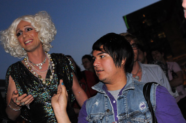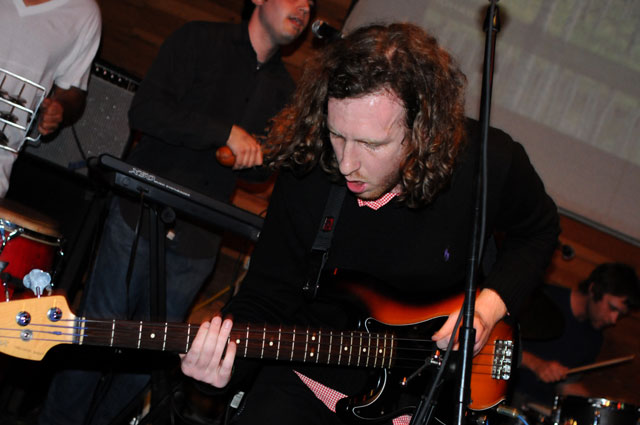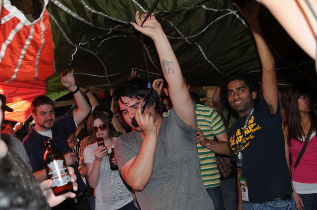 After swinging by the meet-up hosted by our good friend Whitney of Pop Candy and a bit of Amrit's-birthday celebrating, we trekked to Red 7, moving back and forth between the PPM showcase and Heeb Magazine on the Red 7 patio. Making like Some Velvet Sidewalk meets King Kong, Olympia trio Gun Outfit were a great adrenaline shot of straight-up, Northwest rock 'n' roll. (If you haven't heard Dim Light, track it down.) Speaking of conjuring the past, next we caught Slumberland somnambulists Crystal Stilts do their downcast, prismatic noise pop. Upon entering the venue, we were told the band had forgotten they were playing and showed up late, but they set up quickly and slowed back down in time for their performance. Dazed and Ian Curtis frontman Brad Hargett is always fun to watch. We caught Hisham Bharoocha's layered, one-man Soft Circle drum circle -- the hypnotic chanted vocals and looped guitars making for an especially nice effect after a day of Lone Stars -- before walking next door for some more Golden Filter. This is the moment we actually danced.