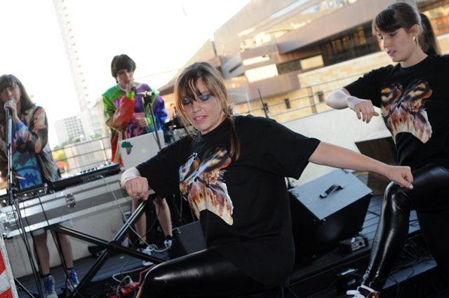 Where last night ended with the depressingly over-stuffed and technology-marred Peter Bjorn & John, Mika Miko put a perfect cap on our Thursday night, with their quick, ragged, and raw punk. Jennifer Clavin, with phone microphone and non-stop hop-step dance, wins the prize as the day's most compelling front person. Figuring that was as good a place as any to call it a night, we ventured out to find a taco truck ... that we never found.