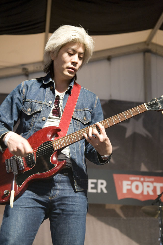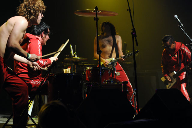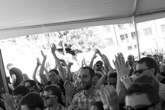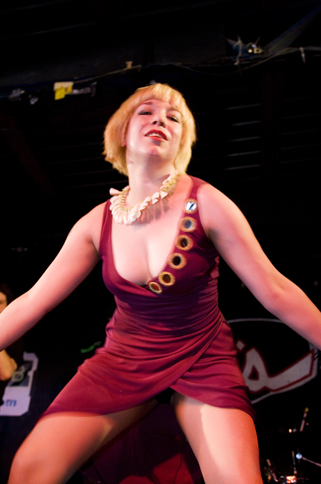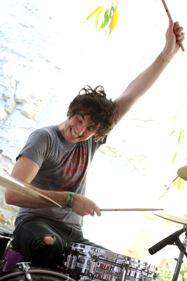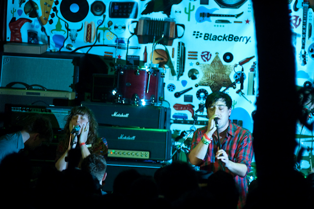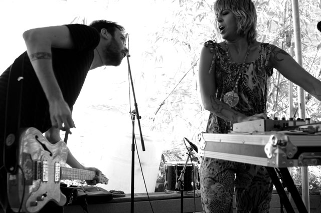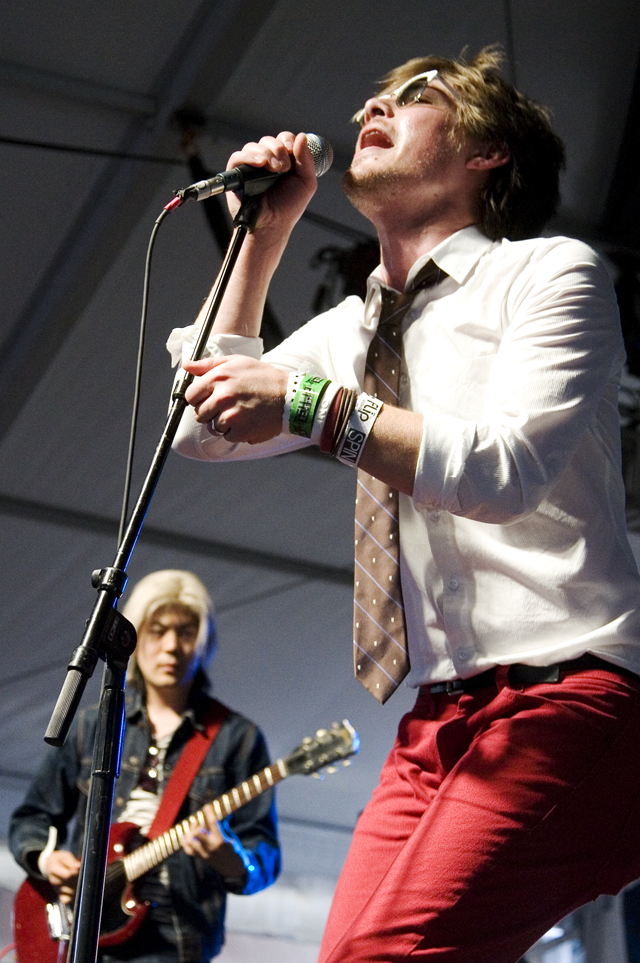 Really, we don't envy the folks who had to play after that, but people had to play after that. If anyone's up to the task of letting it all hang out live, it's King Khan (& his Shrines). Department Of Eagles didn't strip down to their underwear, but they were joined by Beach House's Victoria Legrand for a cover of the Grateful Dead's "Fire On The Mountain," which paired nicely with her appearance to do "Two Weeks" live for the first time with Grizzly Bear at the Cedar Street Courtyard later that night.