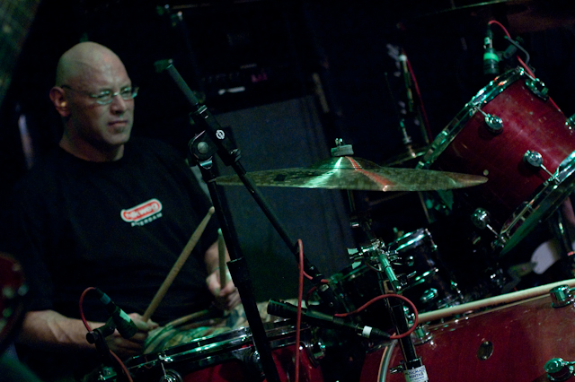 The happy riffs and triumphant Iron Maiden-isms of Slough Feg were the perfect setup and foil to Absu's suffocatingly intense performance: It's already been mentioned that their new self-titled album -- the legendary Dallas-based USBM crew's first in almost eight years -- is a juggernaut. Live, after dealing with sound issues and a broken snare (!!), the band (and the smell of grass) reached a crest with "Four Crossed Wands (Spell 181)" (from 2001's fan favorite Tara) and before that -- the eventual title of Amrit's biography -- "Swords and Leather."The band's leader and songwriter -- drumming vocalist Proscriptor McGovern -- is a hoot to watch, switching between tongue-in-cheek and menacing within the course of a single between-song tidbit. New tracks, a la "13 Globes" -- progressive, atmospheric, unrelenting -- sound super live.