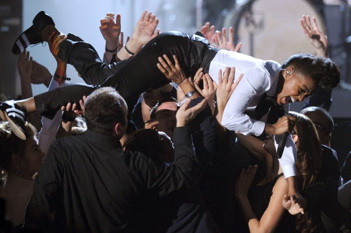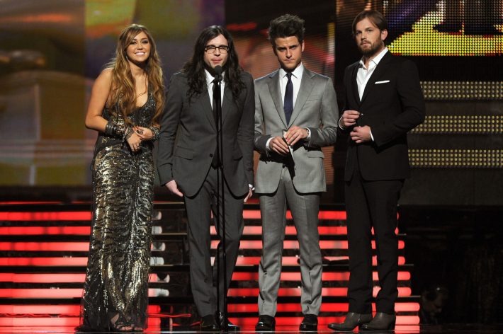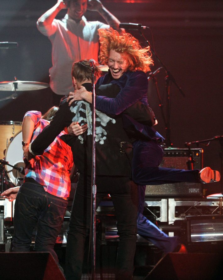 Other winners last night include The Black Keys, Neil Young, Them Crooked Vultures, Muse, Cee Lo Green, and La Roux. Bob Dylan, Mick Jagger, Kings Of Leon, Muse, Janelle Monae, Norah Jones, Drake, and Cee Lo Green also appeared. Watch Arcade Fire's win below, as well as their two performances: