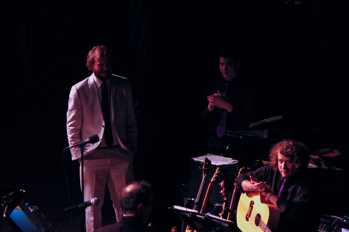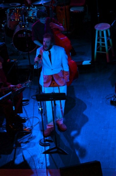 According to the Ledger-Telegram, last night's event was a lovefest, with Justin showering praise upon appreciative students who weren't starstruck because the indie rocker is so humble. Said Junior Leo Strei, a trumpeter: