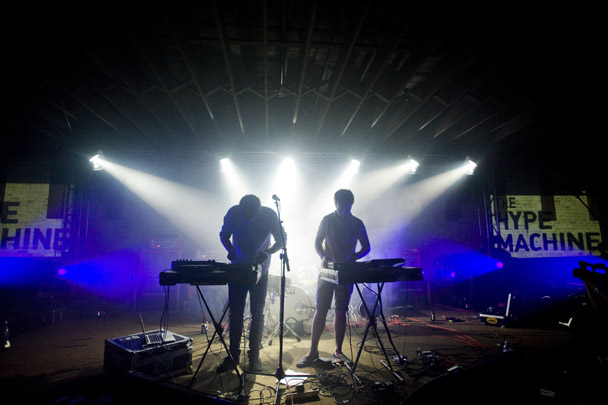 This was more like it. The two Mount Kimbie kids also had a guitar, and a snare with a cymbal, but these beats were created live with a drum machine and sample pads, every element of their visceral electronics rendered in real time and restoring some life to the night air. Rapper Chris Young jumped onstage for an awkward but energizing moment. Mount Kimbie was seemingly unphased; their focus throughout was on the beats and their supplemental ambient textures, and it paid.