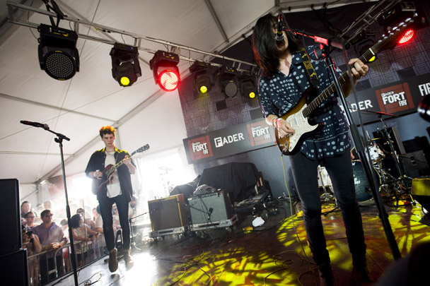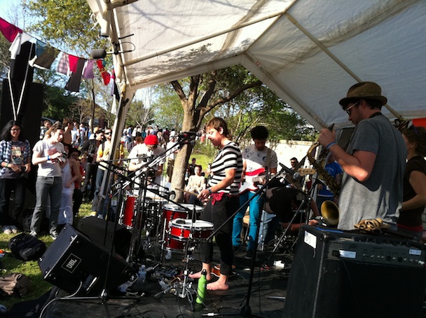 Click on for some thoughts and sights from a very busy Friday in Austin. Tonight's the last night here, so if you need some guidance please refer to our list of must-see bands, or our favorite moments from Wednesday and Thursday. And if you're looking for a way to close out your SXSW, come to our LAST NIGHT party: Das Racist, Owen Pallett, Puro Instinct, Cults, and Gold Panda. Doors are at 11PM and the drinks are free all night so please get there as early as possible. It is going to be a madhouse. We want you to get in.