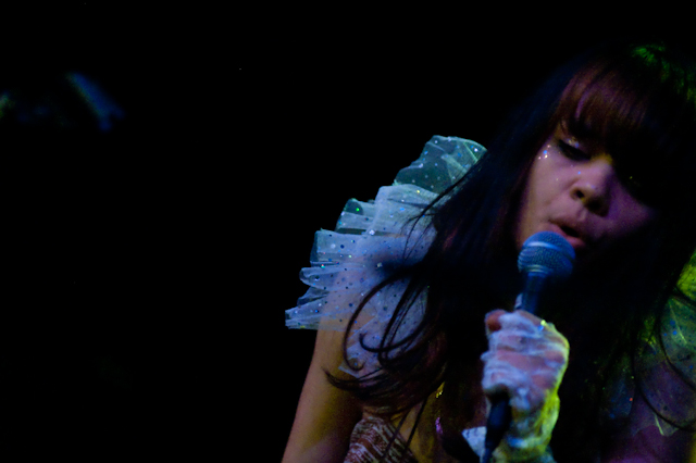 Natasha Khan has what might be the song of the year, a spellbinding new album, a performance on Letterman tonight, and the Thom Yorke stamp of approval. It's an impressive fact sheet, and it got tossed early into the haunting Two Suns standout "Glass" last night. What happened in Bowery Ballroom was a slate-wiping de novo revue, bringing the sort of magic that creates hopeless devotion. Although when people come to your show with glitter, headdresses, and marriage proposals, you're probably doing just fine.