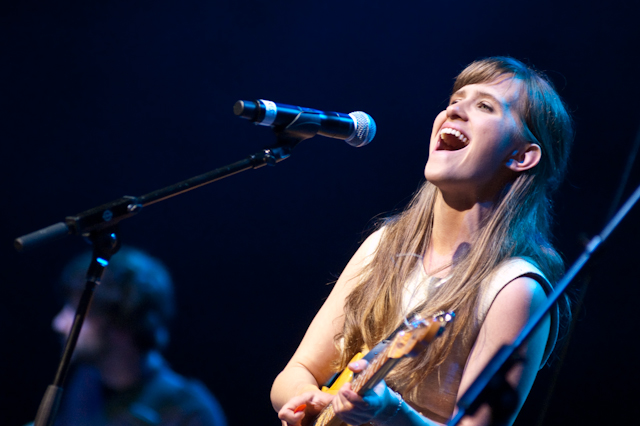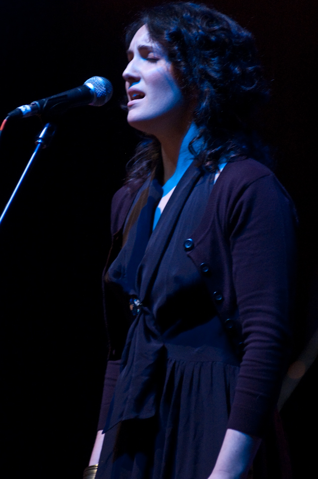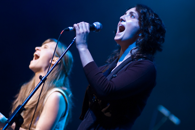 ...and if not Sharon Jones, then etc. Everybody did it. Hard. Essentially, each artist (but for My Brightest Diamond and Dave Sitek who went one-off) was given a four-song mini-set, during which they performed their contribution to the compilation along with whatever else. For Dirty Projectors that meant opening the show with the seven-minute epic "Useful Chamber" and "Stillness Is The Move" (SXSW was one thing, but now Amber is seriously starting to explore the space with those dance moves and Mariah styles) before being joined by David Byrne for two more: "Knotty Pine" and "Ambulance Man," another Byrne/Projectors collab created for the comp that never made its list. (Hear it here.) It's a great ballad -- the Davids melding voices in striking harmony -- and seeing them croon side by side further framed my thought that these two dudes are linked, mentor and heir. At the very least, they are similarly tall and twitchy. Also if you haven't, listen to Bitte Orca all the time. Because it is the best.
