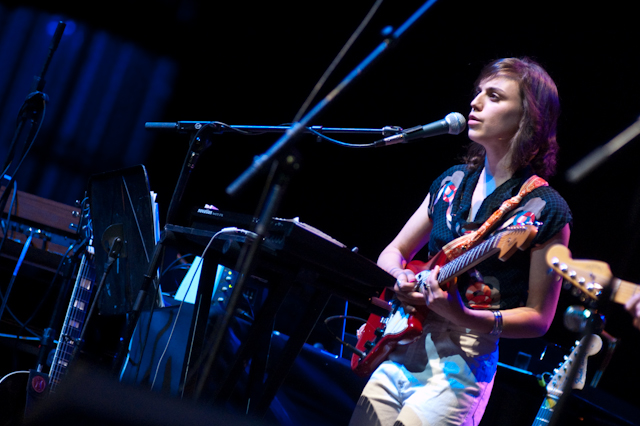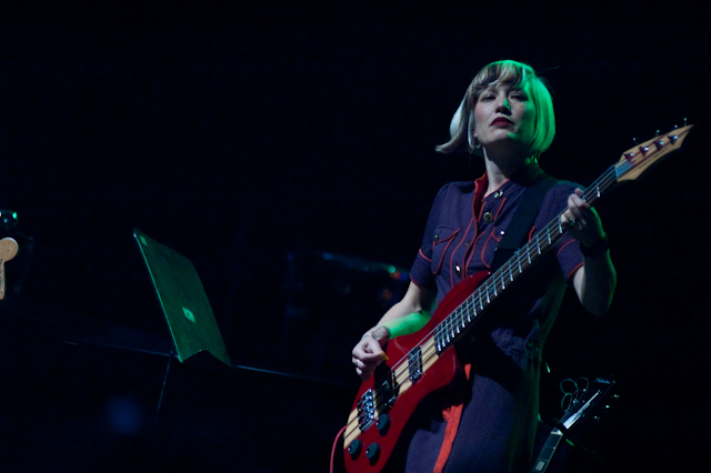 Set breaks were eased with vintage video -- Sinead doing a tune from Red Hot & Blue; Free Kitten, Bikini Kill, Luscious Jackson, Huggy Bear, et al talking about safe sex, etc. -- a decision which lived and died by the videos they chose to air. They chose the right videos. Kim Gordon talking condoms and Beavis & Butthead's responsibility as national role models to address safe sex was almost as good as Feist's entire four-song set directly after it. But that was later.