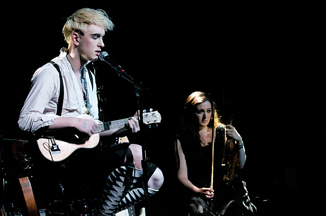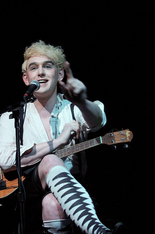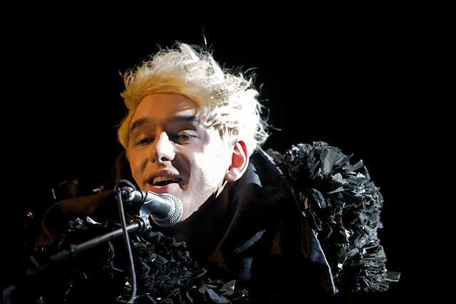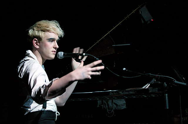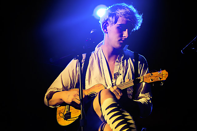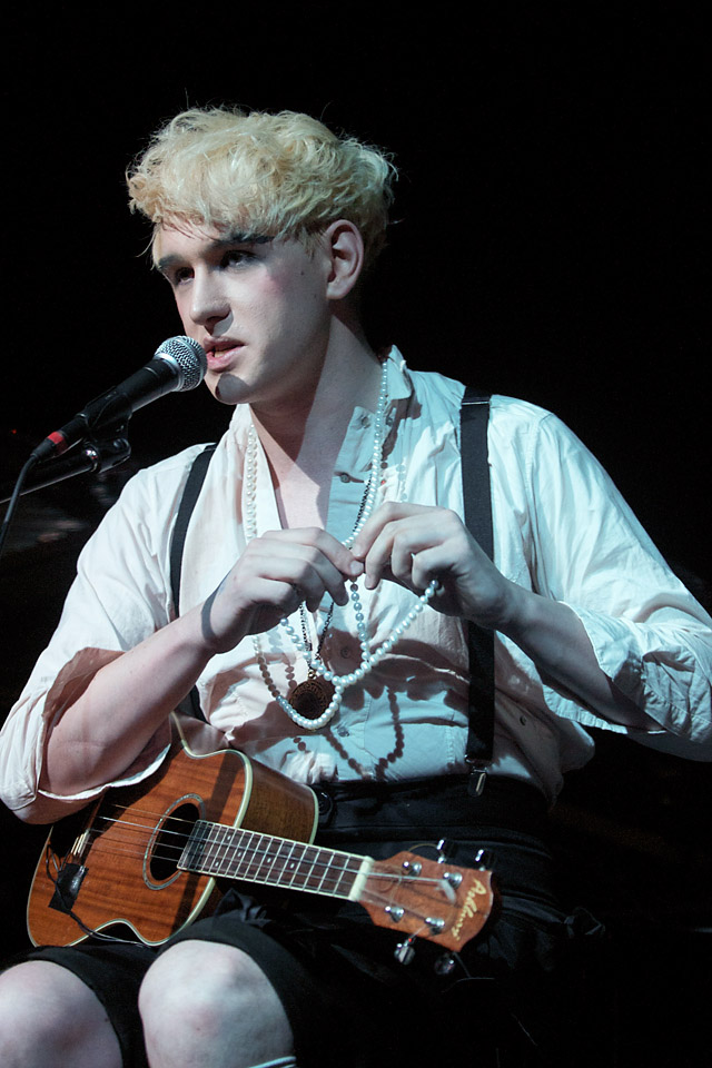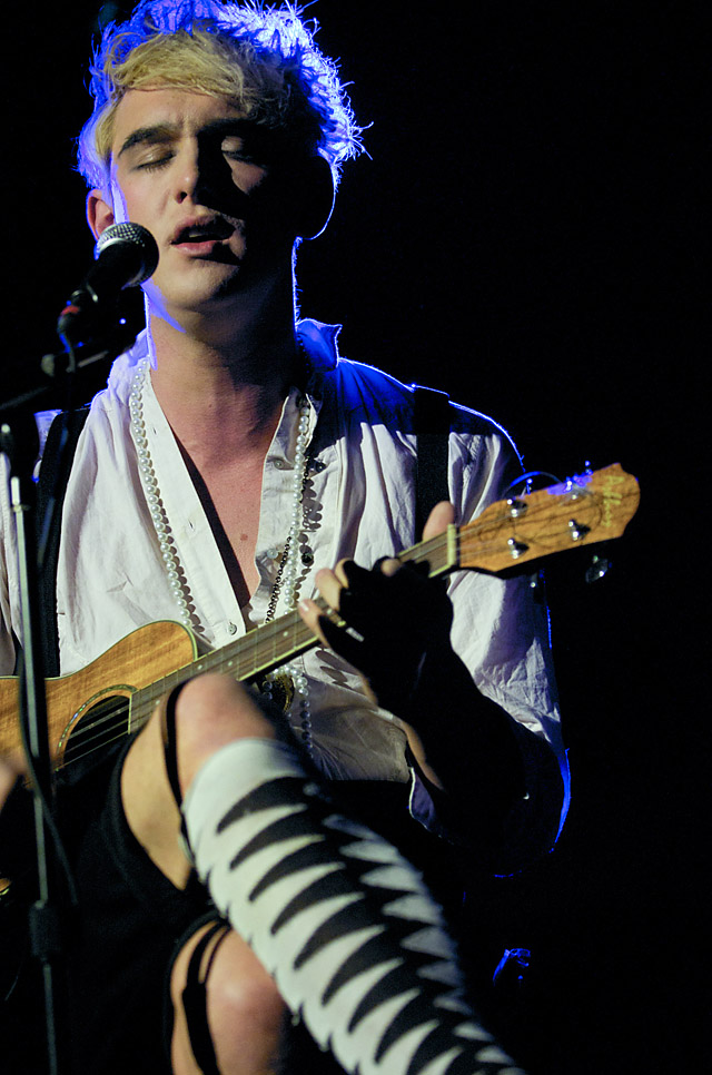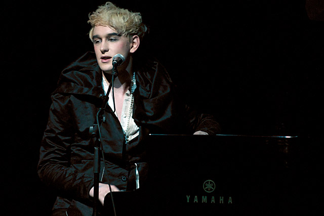 After seeing Patrick's bare ass paired with the sexed-up synths in the "Vulture" video, and after seeing these pics from Heaven, you probably wouldn't expect last night's photo spread from photographer Natasha Ryan to look so ... intimate? Wholesome, even. In fact the set was meant to be an acoustic affair, LPR set up for dinner seating, Patrick seated at the piano and with his ukulele, in a hoodie with his guitar, showing off relatively tame socks with ass kept firmly in pants. The looseness extended to the setlist, which was created on the spot, drawing from the forthcoming The Bachelor, The Magic Position, and the occasional request. Patrick's new album is out in June. The man spoke about it in this Progress Report.