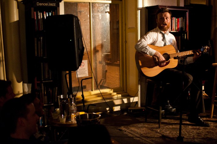 The Housing Works songs though -- I wrote them in about a week, and then we performed them a week later. It was a different kind of thing, more like trusting your instincts, going with the first thought every time, not letting yourself edit or revise.Last Tuesday, I was hanging out with my brother at a bar and I left to go work on the words for the third song. I started walking, wrote all the lyrics on the 5-minute walk back to the apartment, then turned around and went back to the bar.When I got back, everybody at the table was still talking about Hugo Chavez.